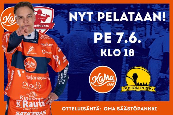 Tuli ottelusta sitten sisä- tai ulkopelin juhlaa, varmaa on kuitenkin se, että luvassa on huippujännittävä ja suuria tunteita sisältävä kamppailu tärkeistä pisteistä. KaMa kaipaa täytettä päänahkahyllyynsä ja Puijon pelinjohtajakin on vaihtunut. Kello 18 alkavaan otteluun ennakkoliput myy Tiketti. Otteluisäntänä toimii Oma Säästöpankki.